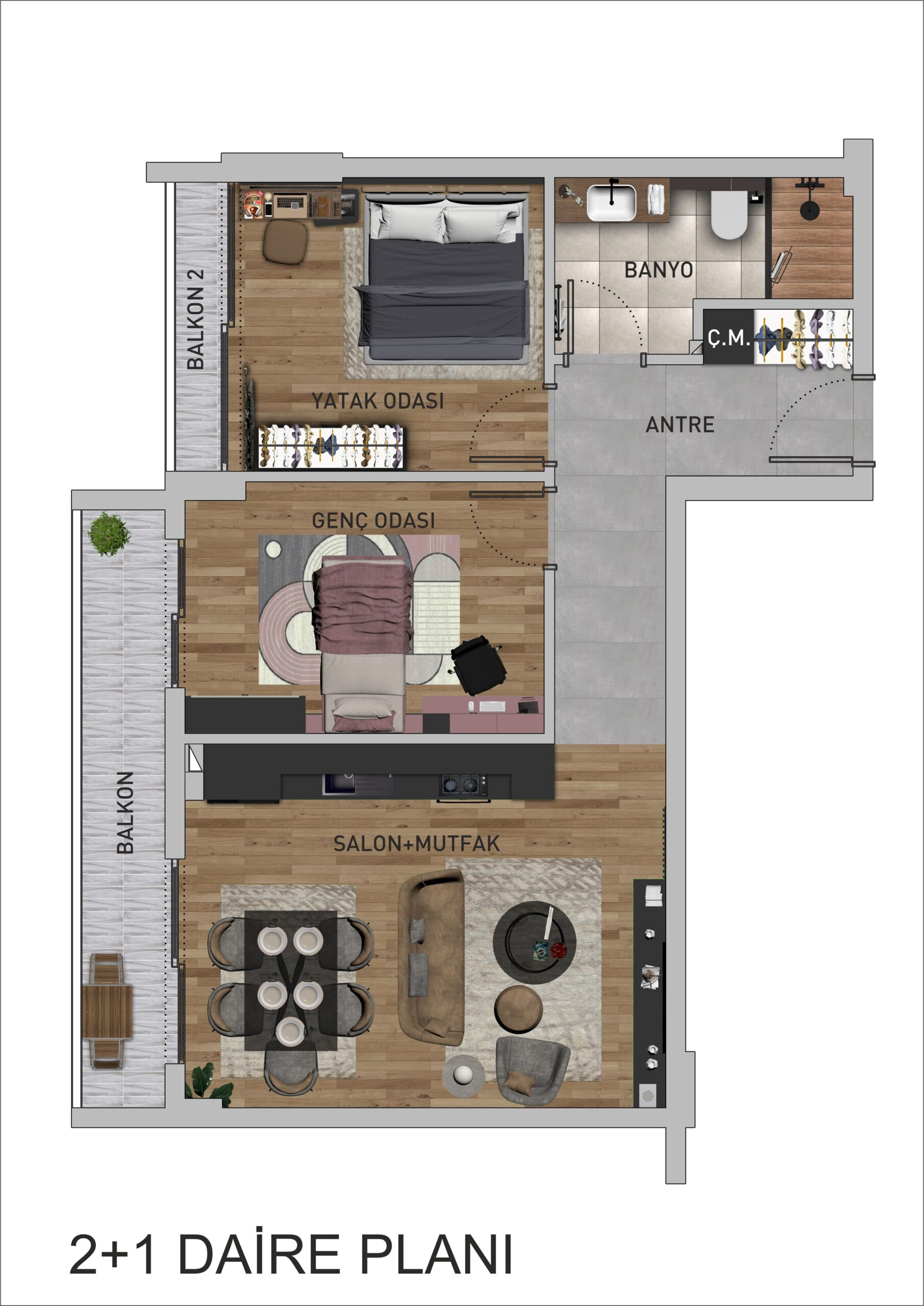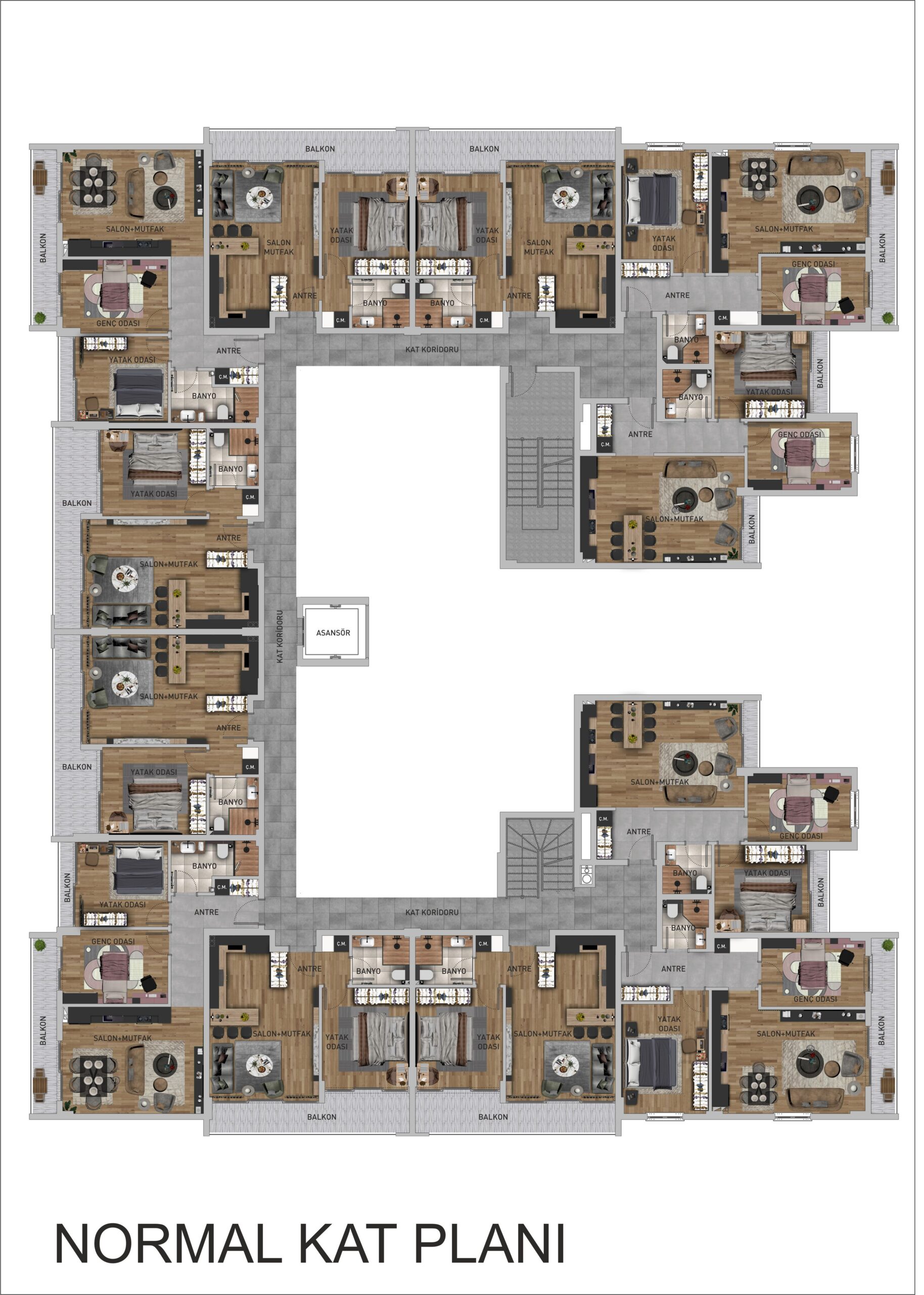 - Proje Bilgisi: 3, Toplam daire 36 olup her katta 12 daire vardır.
